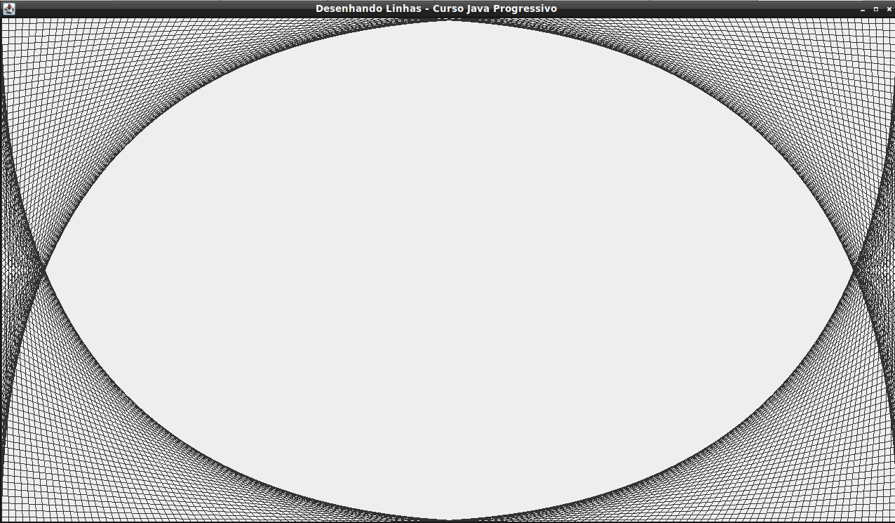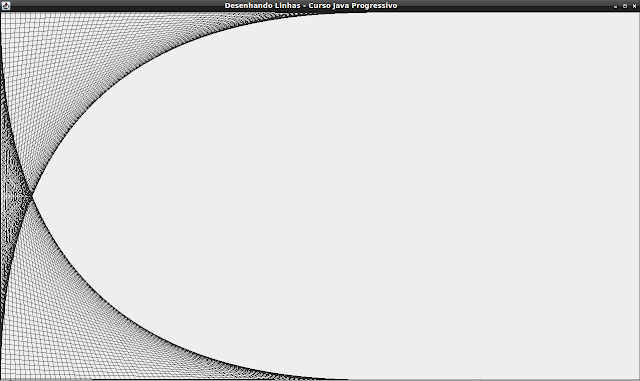 Para mostrar melhor como usar linhas em programação gráfica em Java, vamos ensinar e mostrar o código de diversos programas que geram belas figuras, como essa abaixo.Para isso, vamos usar o código de nosso aplicativo do artigo sobre desenho de linhas.